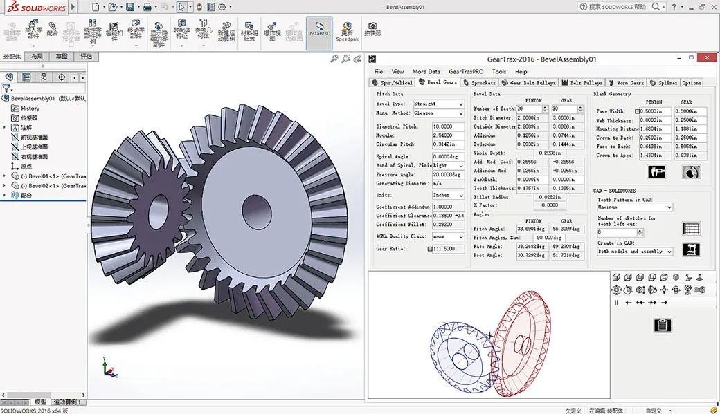 GearTrax简介GearTrax 是一个自动创建驱动元件的实体模型的SOLIDWORKS插件,包括直齿轮、斜齿轮、锥齿轮、链轮、渐开线、齿形带齿轮、蜗轮和蜗