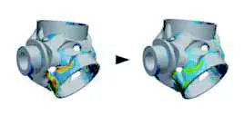 Tosca Structure的Shape 模块通过对外表面节点位置优化,达到降低局部应力、修改提升设计。设计目标往往是使应力分布更加均匀或提升固有频率。可以帮助客户对现有结构有限元模型的迅速提升,降低应力集中,提升设计的耐久性或提升固有模态。Tosca 形状优化也支持非线性分析,接触,大变形,非线性材料和疲劳。