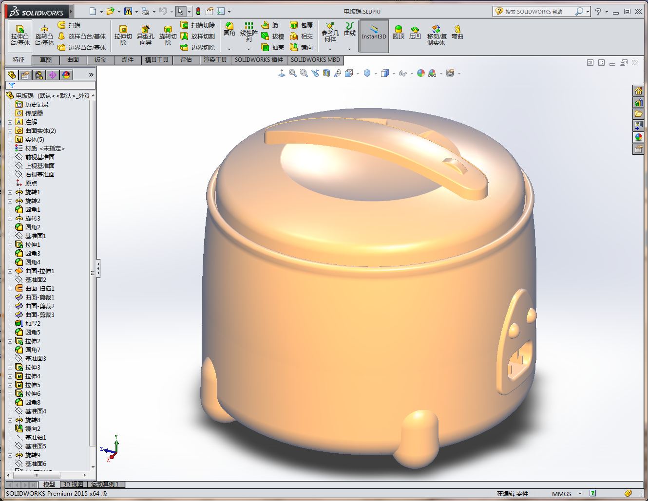 电饭锅的SOLIDWORKS模型学习视频教程可以查看 免费视频 中的快速建模视频教程