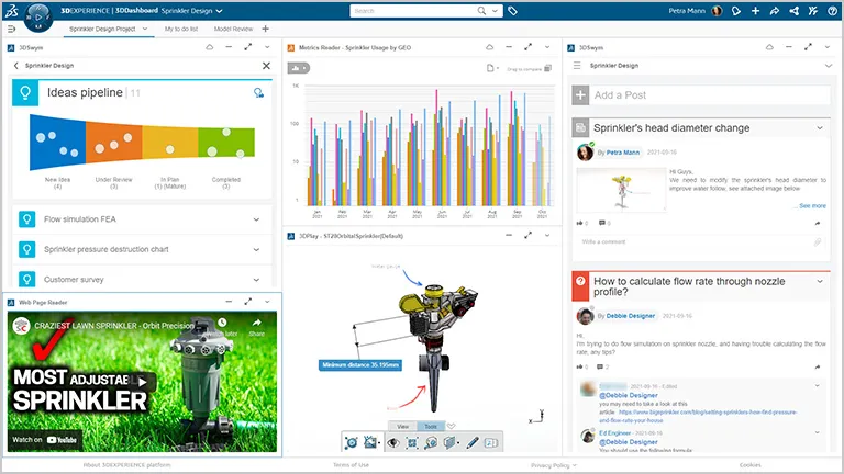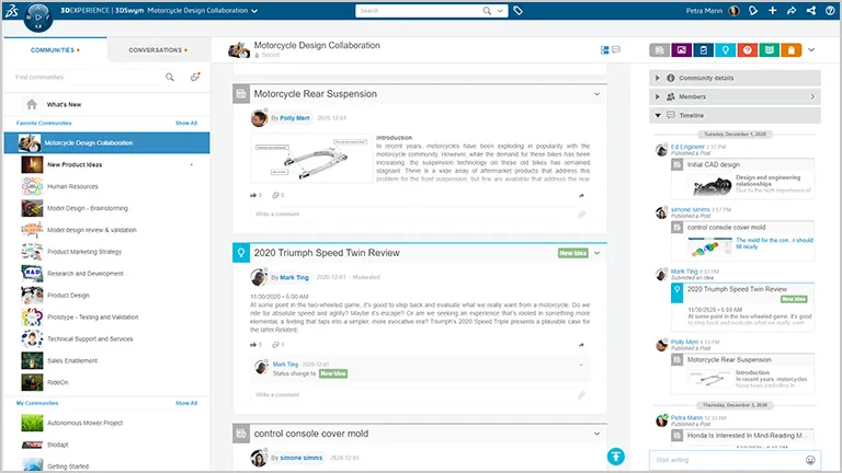 • 设计师和工程师可以与所有部门协作,获得有关设计的反馈或在 3DSwym 社区中分享想法.