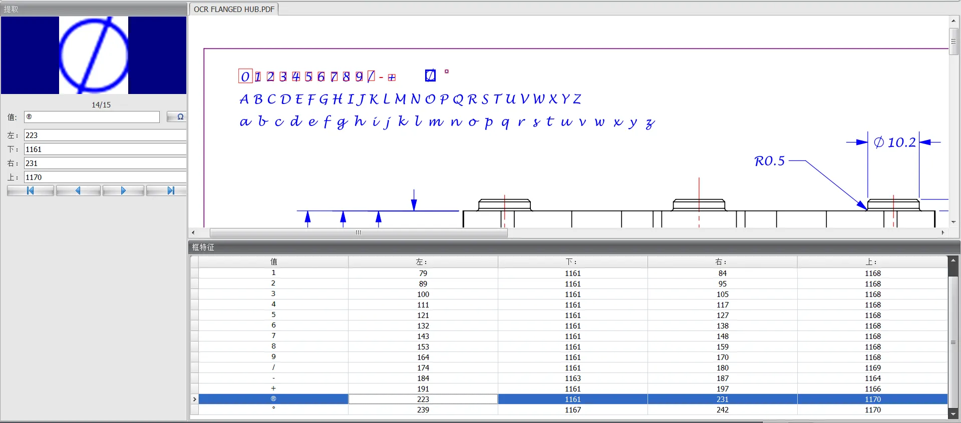当Inspection提供的词典字体不能满足我们的工作需求时,可以使用OCR编辑器来创建自定义词典。OCR编辑器可以让用户从已有的PDF和TIFF文档生成自定义的词典,通过框选特征然后指定我们期望的值实现。
