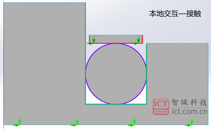 约束底座的所有移动和旋转,并设置两组本地交互,形式为接触,如下图。