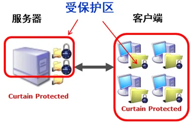 Curtain e-locker 拥有独一无二的设计「安全区」。管理员可以设定那些服务器上的资料需要Curtain保护,如果用户需要试用受保护资料,他们的计算机必须要安装了Curtain客户端,在安装客户端时,系统会自动在用户计算机上建立一个加密文件夹(称为本地安全区),用户可以如常在安全区处理文档(如:新增、重新命名、删除、修改文档等)但是如果她们没有授权,他们是不能把档案复制到安全区以外的地方。