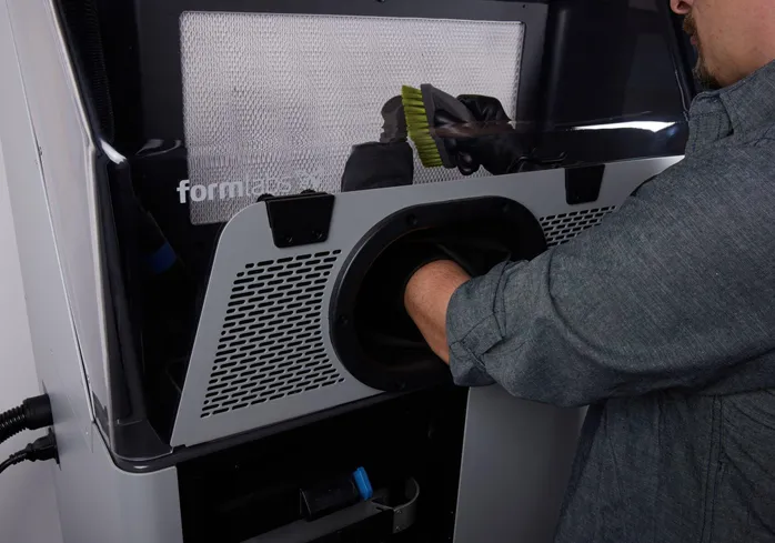 这种 Fuse Blast 的单步式附加组件支持直接清洁并抛光从 Fuse Sift 取出的部件,而无需再使用其他喷砂机器。